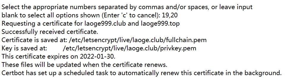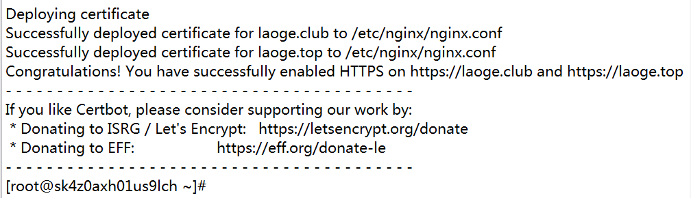 七,最终布署成功会自动更新你的nginx,并提示你加了ssl的域名。